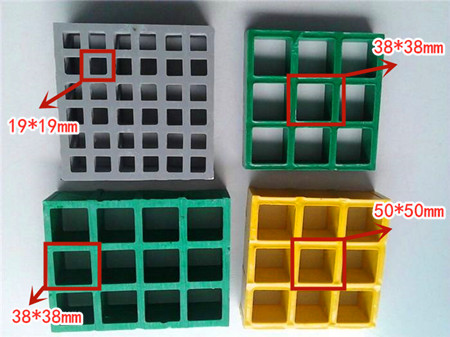 在章節(jié)玻璃鋼格柵板的型號(hào)尺寸中介紹過(guò),由于生產(chǎn)工藝屬于模塑制作工藝,所以格柵板的長(zhǎng)寬尺寸都是固定的,如常用的玻璃鋼格柵板長(zhǎng)寬尺寸以1.22m*3.66m、1m*4m、1.25m*4.05m這三種為主。下面主要介紹的是玻璃鋼格柵板孔徑大小的區(qū)別與選擇。