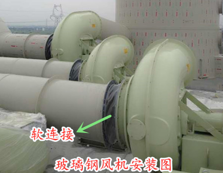 c、風機的進風口語管道連接時,建議在進風口與管道之間增加一個軟連接(上圖)。這樣可以避免以管道位置改變對風機造成的壓力,而且更便于風機的檢修與維護工作。