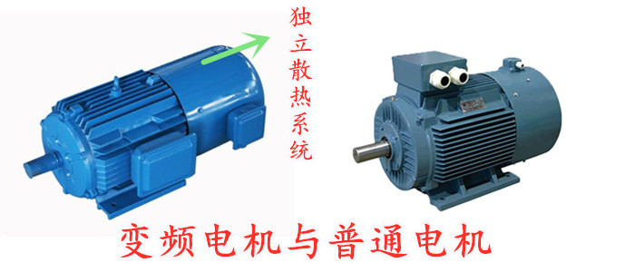 a、變頻電機從結構上來說比普通電機多一個獨立的散熱系統;該散熱系統無論電機的轉速高低,散熱風機的轉速不變,而普通電機的散熱系統轉速與電機的轉速相同,當電機轉速降低時散熱系統的轉速也降低,散熱效果較差;