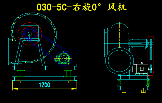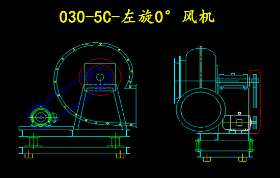 本文介紹的方向為0°的風機,其出風口方向與180°類似,區(qū)別是180°方向風機的出風口在水平線上面,而0°風機的出風口位于水平線下面。