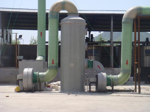 e、通過更換樹脂的種類可調整廢氣塔的耐溫能力,與玻璃鋼離心式風機類似,常規的不飽和樹脂制作的廢氣塔,一般耐溫在60-70℃左右,而使用耐高溫專用的樹脂進行制作,其耐溫最高可達200℃左右;