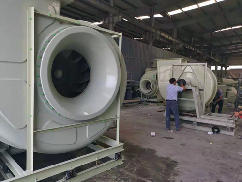 有許多客戶對風機的結構沒有直觀的了解,不清楚玻璃鋼離心風機的配件是如何組裝在一起的。下面就展示一些玻璃鋼離心風機組裝現場圖。
