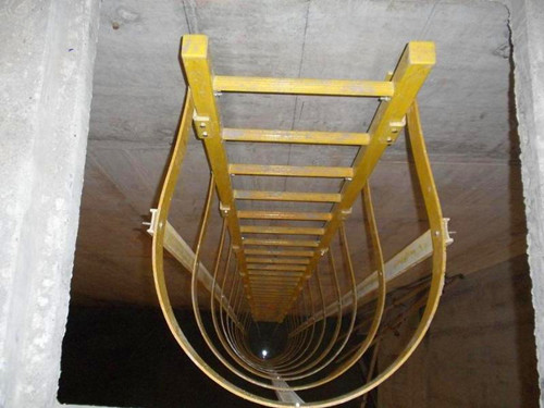 玻璃鋼梯子,也常被稱作玻璃鋼爬梯,主要由玻璃鋼材質的拉擠型材組成,如下圖所示,是一些玻璃鋼梯子安裝圖展示。在安裝時,會首先使用模壓底座固定在墻上,然后在將梯子與底座固定在一起。