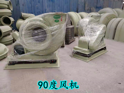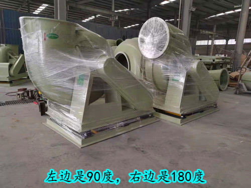 在風機的所有方向中,90°和180°是兩種使用最多的方向。其中90°的風機出風口向上,180°的風機出風口平吹。在章節玻璃鋼離心風機方向中介紹過,風機的方向是以風機中心點作水平線,風機出風口與水平線的角度就是風機的角度。從軸承箱側或皮帶輪側正視,風機的選擇方向為順時針,則風機為右旋,逆時針則風機為左旋。下面是90°與180°玻璃鋼離心風機圖展示。