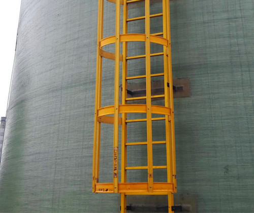 如上圖所示,玻璃鋼梯子由方管和圓管組成,方管作為梯子的主體框架結構,圓管組作為梯子的撐桿。在使用時一般安裝在墻上作為爬梯使用。