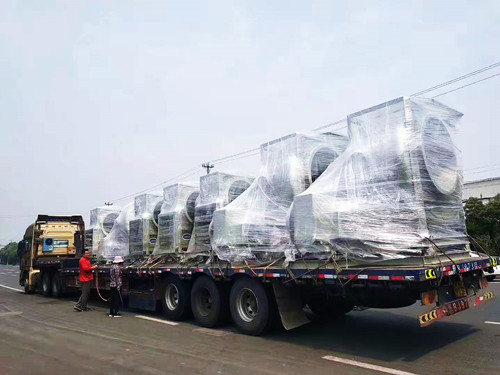 上個(gè)月山東某客戶在我司訂購的一批6臺(tái)14C75KW的玻璃鋼離心風(fēng)機(jī)今天發(fā)貨,之所以交貨期多達(dá)一個(gè)月,主要是因?yàn)檫@一批風(fēng)機(jī)使用的電動(dòng)機(jī)為變頻防爆專用電機(jī),電機(jī)需要進(jìn)行定制。在發(fā)貨前使用透明塑料模對(duì)風(fēng)機(jī)進(jìn)行了整體的包裹。