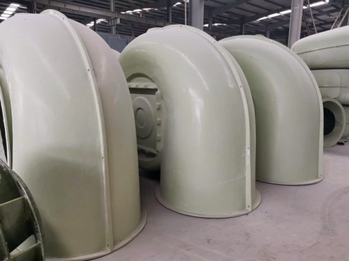 b、使用人工手糊工藝制作風機外殼、葉輪、架子等配件,然后進行切割、打磨、組裝等工作;